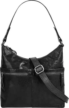 Leder Schultertasche Voila Hobo Bag Black schwarz