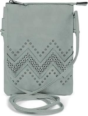 Damen Mini Bag Umhängetasche mit Zick-Zack Cutout und Nieten, Schultertasche, Handtasche, Tasche 02012211, Farbe:Grau-Blau