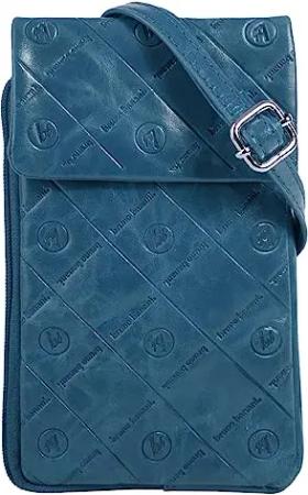 Umhängetasche Echt Leder Damen | Crossbody Ledertasche mit Handyfach | Messenger Bag mit Magnetverschluss | Schultertasche mit Reißverschluss blau | 022201