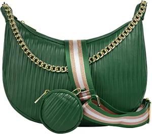 Umhängetasche Echt Leder Damen | Made in Italy, Clutch, Abendtasche mit Goldkette, Umhängetasche abnehmbarer Schultergurt, elegante Damentasche grün | 021203