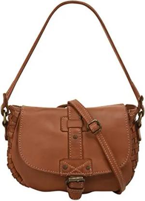Umhängetasche Echt Leder Damen | Made in Italy | Crossbag mit Flechtoptik | Handtasche mit Zierschnalle | 2in1 Damentasche cognac | 020892
