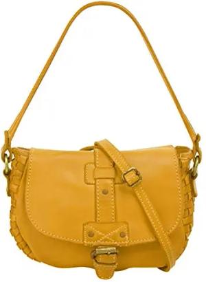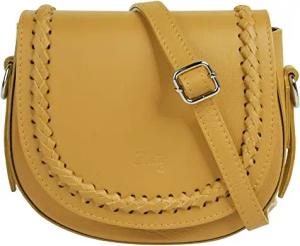 Umhängetasche Echt Leder Damen | Made in Italy | Crossbag mit Flechtoptik | Handtasche mit Zierschnalle | 2in1 Damentasche gelb | 020892