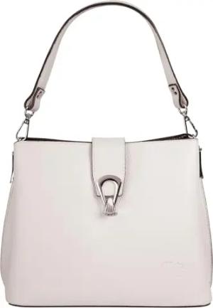 Umhängetasche Echt Leder Damen Made in Italy | elegante City Bag | Shopper mit Drehverschluss weiß 101015