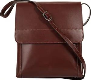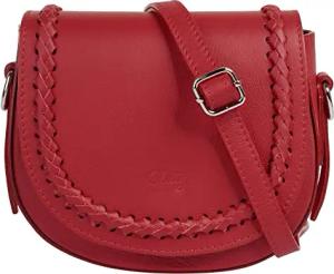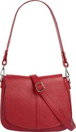 Umhängetasche Echt Leder Damen | Made in Italy | Handtasche mit Deckelklappe | elegante Crossbody Bag mit Henkel rot | 021318