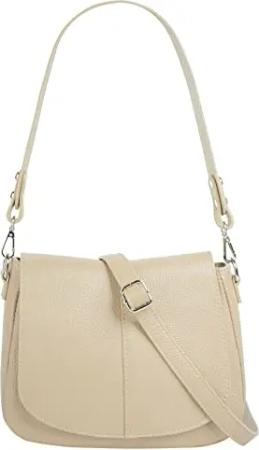 Umhängetasche Echt Leder Damen | Made in Italy | Handtasche mit Deckelklappe | elegante Crossbody Bag mit Henkel beige | 021318