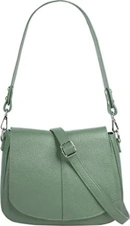 Umhängetasche Echt Leder Damen | Made in Italy | Handtasche mit Deckelklappe | elegante Crossbody Bag mit Henkel grün | 021318