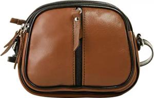 Umhängetasche Echt Leder Damen Made in Italy, Crossbody Bag, Messenger Bag mit Reißverschluss, Schultertasche aus Rindleder cognac 020617