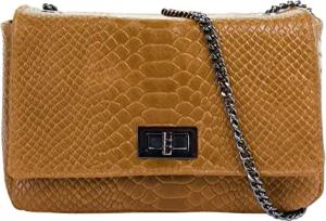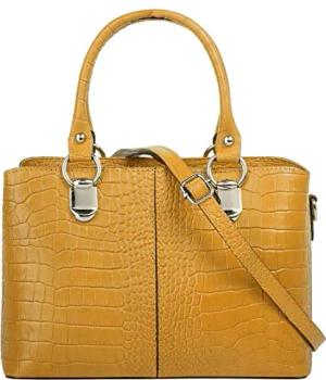 Umhängetasche Echt Leder Damen Made in Italy, Kroko-Optik Handtasche, Damen Schultertasche, elegante Henkeltasche gelb 021374