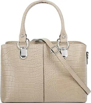 Umhängetasche Echt Leder Damen | Made in Italy, Kroko-Optik Handtasche, Damen Schultertasche, elegante Henkeltasche beige | 021374