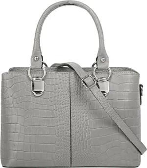 Umhängetasche Echt Leder Damen | Made in Italy, Kroko-Optik Handtasche, Damen Schultertasche, elegante Henkeltasche grau | 021374