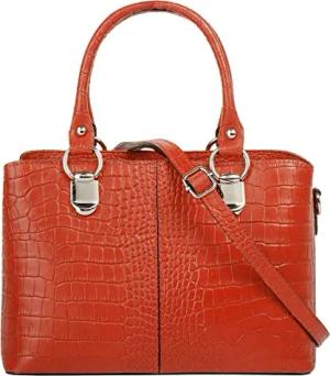 Umhängetasche Echt Leder Damen Made in Italy, Kroko-Optik Handtasche, Damen Schultertasche, elegante Henkeltasche orange 021374