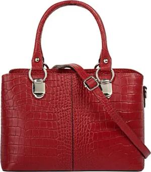 Umhängetasche Echt Leder Damen Made in Italy, Kroko-Optik Handtasche, Damen Schultertasche, elegante Henkeltasche rot 021374