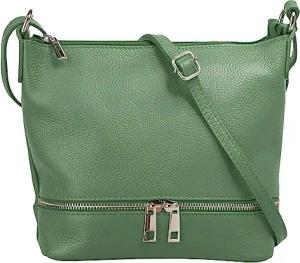 Umhängetasche Echt Leder Damen Made in Italy, Crossbody Bag, Messenger Bag mit Reißverschluss, Schultertasche aus Rindleder grün 020617