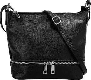 Umhängetasche Echt Leder Damen | Made in Italy | handliche Crossbody | elegante Minibag mit Reißverschluss schwarz | 019562