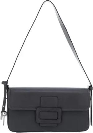 Leder Schultertasche Voila Hobo Bag Black schwarz
