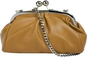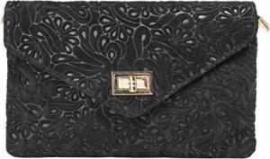 Umhängetasche Echt Leder Damen | Made in Italy | 2in1 Abendtasche | Handtasche mit Bügelverschluss | 021263