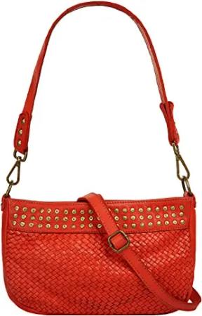 Umhängetasche Echt Leder Damen | Made in Italy | Crossbody mit Flechtoptik | Abendtasche mit Nietenverzierung | wandelbare Partytasche | 021381