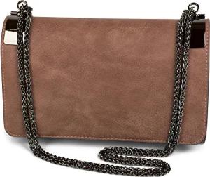 Mini Umhängetasche mit V-Klappe und Metall Detail | kleine Handytasche zum Umhängen | elegante Crossbody Bag mit Kartenfächern für Damen, Farbe:Hellbraun