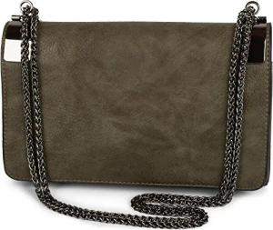 Clutch, Abendtasche mit Metallspangen und Gliederkette, Vintage Design, Damen 02012046, Farbe:Oliv