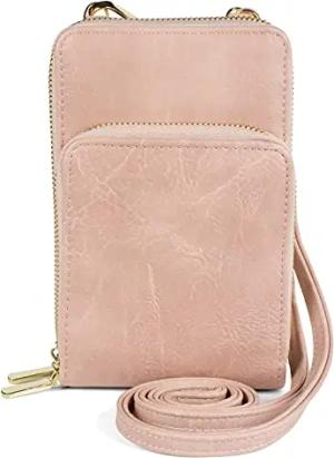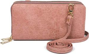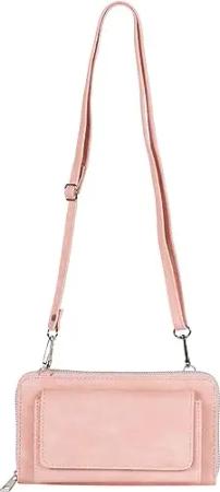Damen Handy Geldbörse mit Schultergurt und RFID Kartenhülle | Crossbody Umhängetasche mit Handyfach Reißverschluss Clutch 20x11 cm, Farbe:Rose
