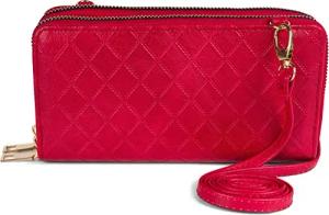 Damen 2 in 1 Mini Bag Umhängetasche mit Rauten Prägung, Geldbörse, Handytasche, Schultertasche 02012379, Farbe:Rot