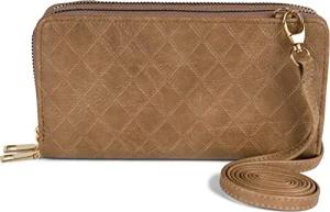 Damen 2 in 1 Mini Bag Umhängetasche mit Rauten Prägung, Geldbörse, Handytasche, Schultertasche 02012379, Farbe:Taupe