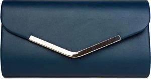 Damen Clutch Abendtasche Envelope Kuvert Design mit Metall Zierleiste und abnehmbarer Kette 26 x 5,5 x 14,5 cm, Farbe:Dunkelblau