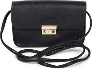 Damen 2 in 1 Mini Bag Umhängetasche mit genarbter Oberfläche, Geldbörse, Handytasche, Schultertasche 02012364, Farbe:Schwarz