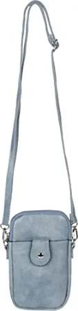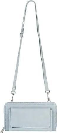 Damen Handy Geldbörse mit Schultergurt und RFID Kartenhülle | Crossbody Umhängetasche mit Handyfach Reißverschluss Clutch 20x11 cm, Farbe:Hellblau