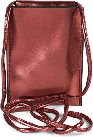 Damen Handy Umhängetasche in Metallic, Schultertasche, Handy-Tragetasche, Mini Bag 02012307, Farbe:Bordeaux-Rot metallic