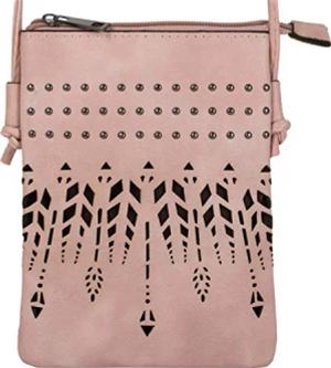 Damen Mini Bag Umhängetasche Ethno Style und Nieten, Schultertasche, Handtasche, Tasche 02012260, Farbe:Rose