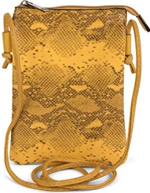 Damen Mini Bag Umhängetasche in Schlangen Optik, Schultertasche, Handtasche, Tasche 02012305, Farbe:Curry