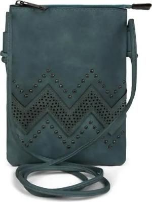 Damen Mini Bag Umhängetasche mit Zick-Zack Cutout und Nieten, Schultertasche, Handtasche, Tasche 02012211, Farbe:Piniengrün