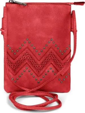 Damen Mini Bag Umhängetasche mit Zick-Zack Cutout und Nieten, Schultertasche, Handtasche, Tasche 02012211, Farbe:Rot