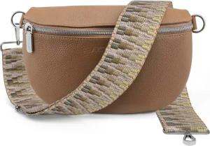 Umhängetasche Echtleder Tasche Handtasche Leder Bauchtasche Klein mit Schultergurt Design Taschenband abnehmbar verstellbares Riemen Crossbody Bag Echt Ledertasche Damen mit Reißverschluss