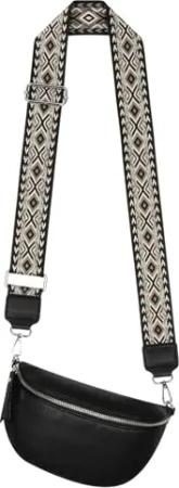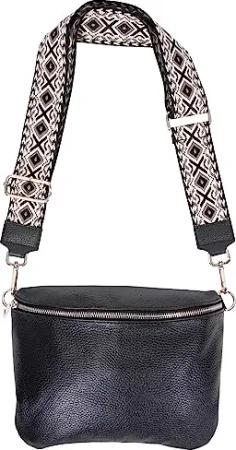 Bauchtasche Umhängetasche Crossbody-Bag Hüfttasche Kunstleder Italy-Design (Black)