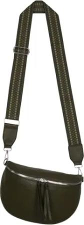 Bauchtasche Umhängetasche Crossbody-Bag Hüfttasche Kunstleder Italy-Design (Dark Green)