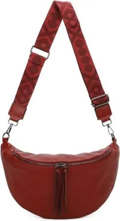 Damen Tasche Crossbody Schultertasche Gürteltasche Brusttasche Hüfttasche Bauchtasche Umhängetasche Cross-Over Bodybag Handytasche Geldtasche Kosmetiktasche Leder Optik Rot M