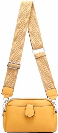 Damen Tasche Crossbody Umhängetasche Bodybag Schultertasche Metallic Handytasche Crossover Kunstleder Handtasche Reise Gelb