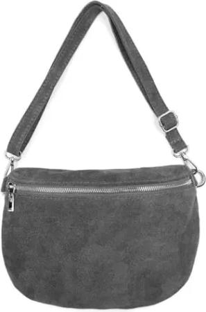 Made in Italy Damen Leder Tasche Gürteltasche Crossbody Hüfttasche Bauchtasche Umhängetasche Wildleder Brusttasche Crossover Bodybag Schultertasche Handytasche Geldtasche Grau M (Wildleder)
