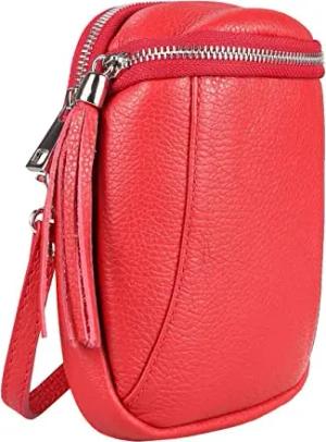 Made in Italy Damen Leder Tasche Umhängetasche Schultertasche Handytasche Geldtasche Ledertasche Crossbody Abendtasche Mini Bag (Knallrot)