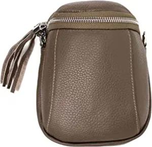 Made in Italy Damen Leder Tasche Umhängetasche Schultertasche Handytasche Geldtasche Ledertasche Crossbody Abendtasche Mini Bag Taupe