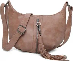 Fritzi03N Vintage Candy Crossbody Kunstleder Damen Umhängetasche Handtasche Festival City vegan abnehmbarer Anhänger Vintage-Waschung 22,5 x 20,5 x 8,5 cm, Rosa