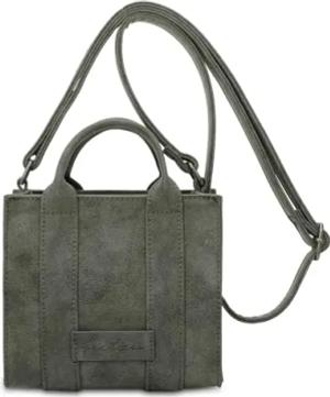 Fritzi03N Vintage Moss Crossbody Kunstleder Damen Umhängetasche Handtasche Festival City vegan abnehmbarer Anhänger Vintage-Waschung 22,5 x 20,5 x 8,5 cm, Gruen