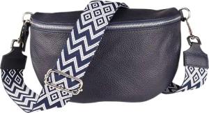 Bauchtasche Damen, Echtleder, Made in Italy, Umhängetasche, Brusttasche, Crossbody Bag (1 Tasche & 2 Gurte) (Navy (Bohemian Navy Weiß), Kleine Tasche (22x13x6cm))