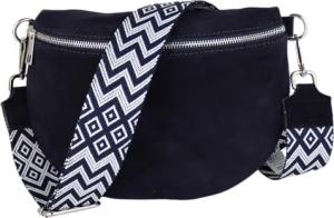 Damen Bauchtasche aus Wildleder, Made in Italy. Als Umhängetasche, Brust- oder Schultertasche tragbar, 26x20x8 cm, Reißverschlussfach hinten. (Upgrade Version: Wildleder Navy Boho)