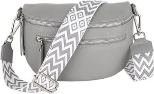 Damen Bauchtasche Umhängetasche 27x14,5x8cm Damen, Made in Italy, aus Echtleder Tasche Echtes Leder, Brusttasche, Crossbody Bag,Bohemian Style (1 Tasche 2 Gurte) (Grau (Boho))