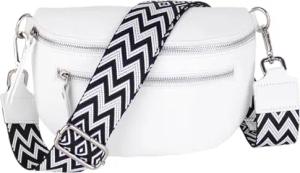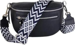 Damen Bauchtasche Umhängetasche 27x14,5x8cm Damen, Made in Italy, aus Echtleder Tasche Echtes Leder, Brusttasche, Crossbody Bag,Bohemian Style (1 Tasche 2 Gurte) (Weiß (Boho Schwarz))