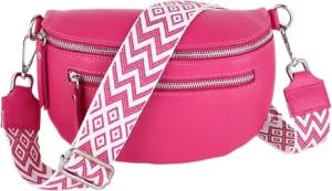 Damen Bauchtasche Umhängetasche 27x14,5x8cm Damen, Made in Italy, aus Echtleder Tasche Echtes Leder, Brusttasche, Crossbody Bag,Bohemian Style (1 Tasche 2 Gurte) (Pink (Boho))