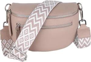 Bauchtasche Damen, Echtleder, Leder, Made in Italy, Umhängetasche, Brusttasche, Schultertasche für jeden Anlass (1 Tasche & 1/2 Gurt(e)) ca.25x16x7cm (Helltaupe)